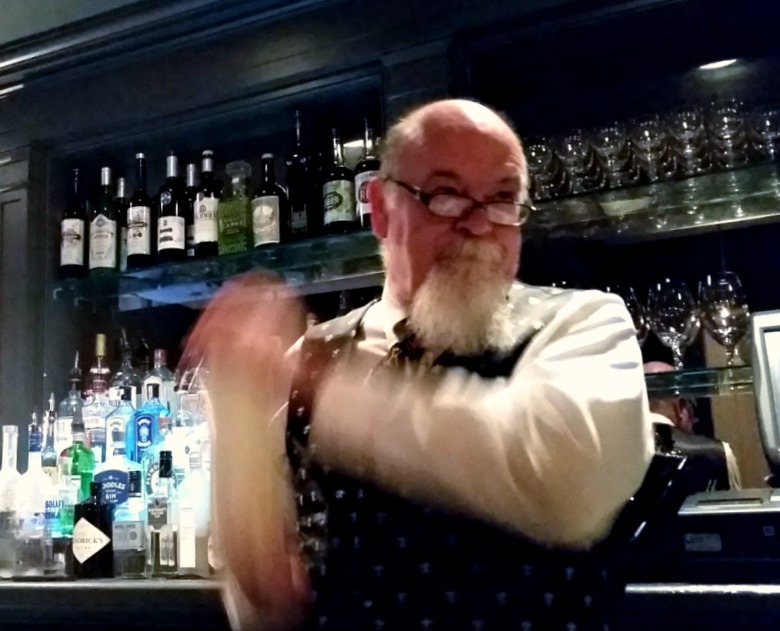Have no fear: back over at Broussard’s, Paul Gustings was showing us why bartenders hate making this drink. Done properly, said bartender must find an egg to crack and a place to dispose of the yoke. Then they need to add half & half, shake vigorously, before adding the additional ingredients and shaking again and pouring over ice cubes. At Broussard’s, those other ingredients included gin, orange flower water, orange liqueur, powdered sugar and soda water. It’s not the fastest drink to make, but it sure was worth the wait.