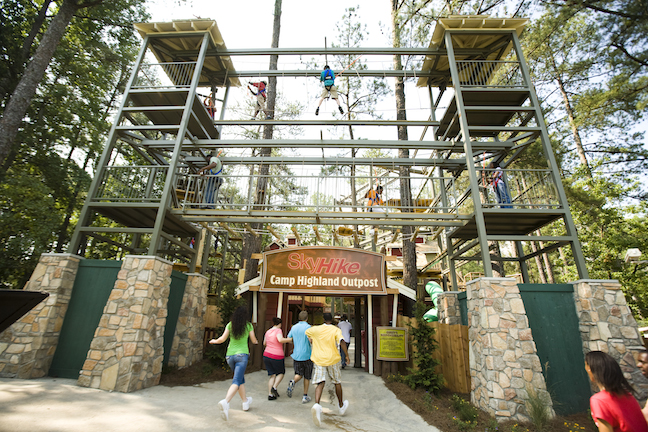 From the ground, this popular attraction at Stone Mountain Park doesn’t seem all that intimidating. But climb the stairs to the third level of this ¼-mile rope course—where you cross suspended wooden bridges, leap from one thin wooden slat to the next and balance on wiggling tightropes 40 feet above the ground as your hands sweat and legs shake—and you may find yourself questioning the “moderate” adrenaline rating above. Fortunately, there are also 12- and 24-foot-long trails for beginners (or those with a healthy fear of heights).