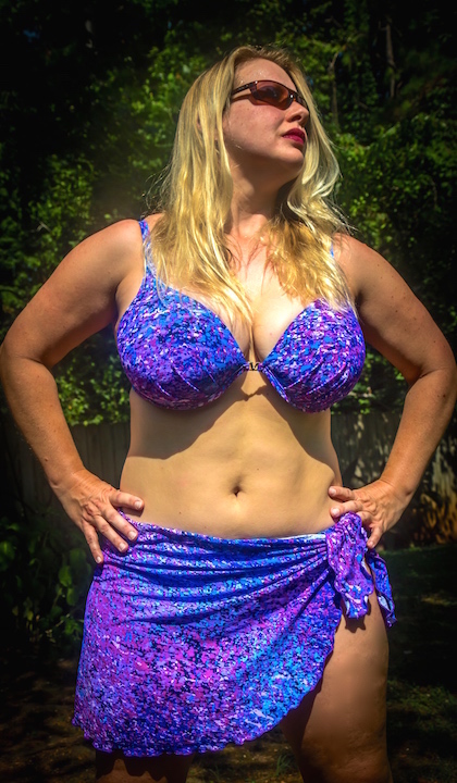 Finding swimwear with a flattering fit can be a struggle for many people, particularly those with, shall we say, “ample assets.” So my lady was thrilled to discover two new-to-us lines whose bikinis hug her curves perfectly.