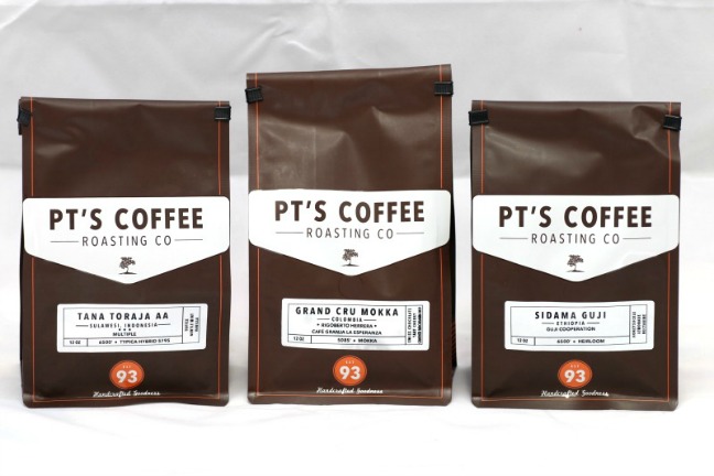 PT’s Coffee Roasting Co: Indonesia- Tana Toraja AA, Colombia- Grand Cru Mokka, Ethiopia- Sidama Guji,