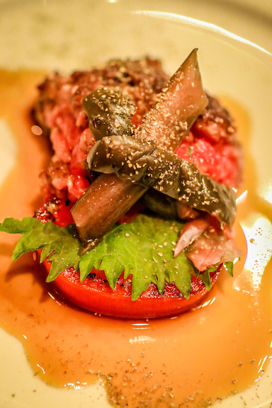 When Chef Ito disappeared for a while, we knew he was up to something. He came back with a dish that’s not even on the menu (yet), but which totally SHOULD be: Seared Kobe Beef Tartar with plum vinegar-pickled cucumber and tomato. It tasted like the most impeccable, upscale Japanese hamburger you can imagine, with the tartness of the tomato and pickle cutting the fatty richness of the meat. So, so, so freakin’ good!